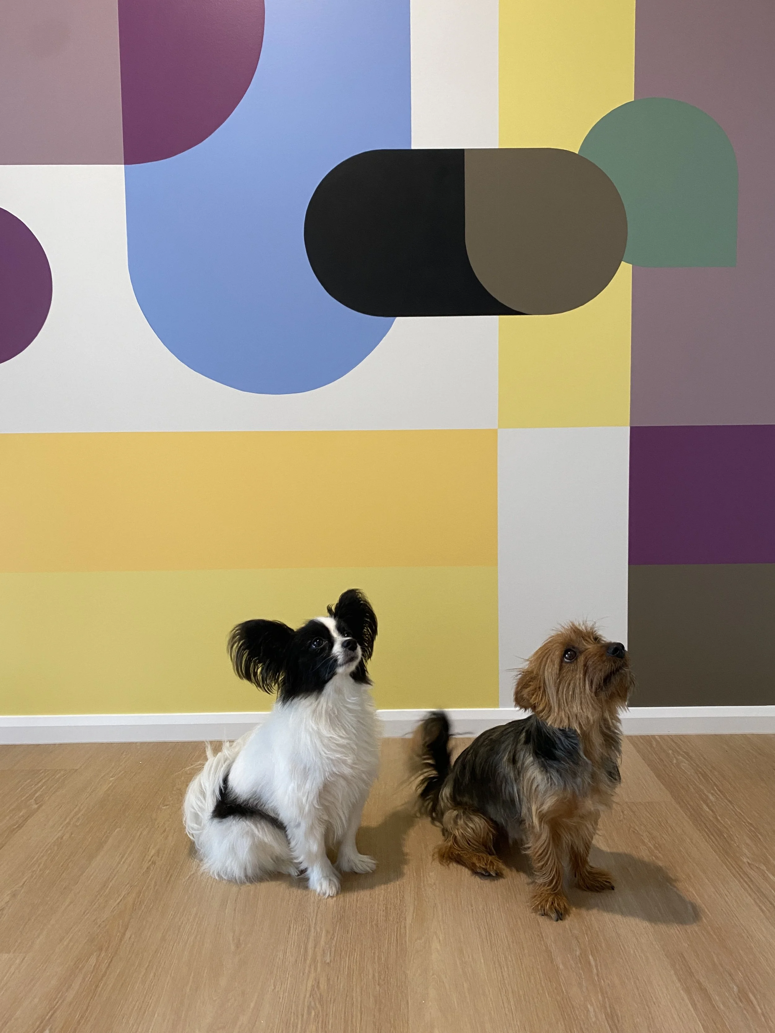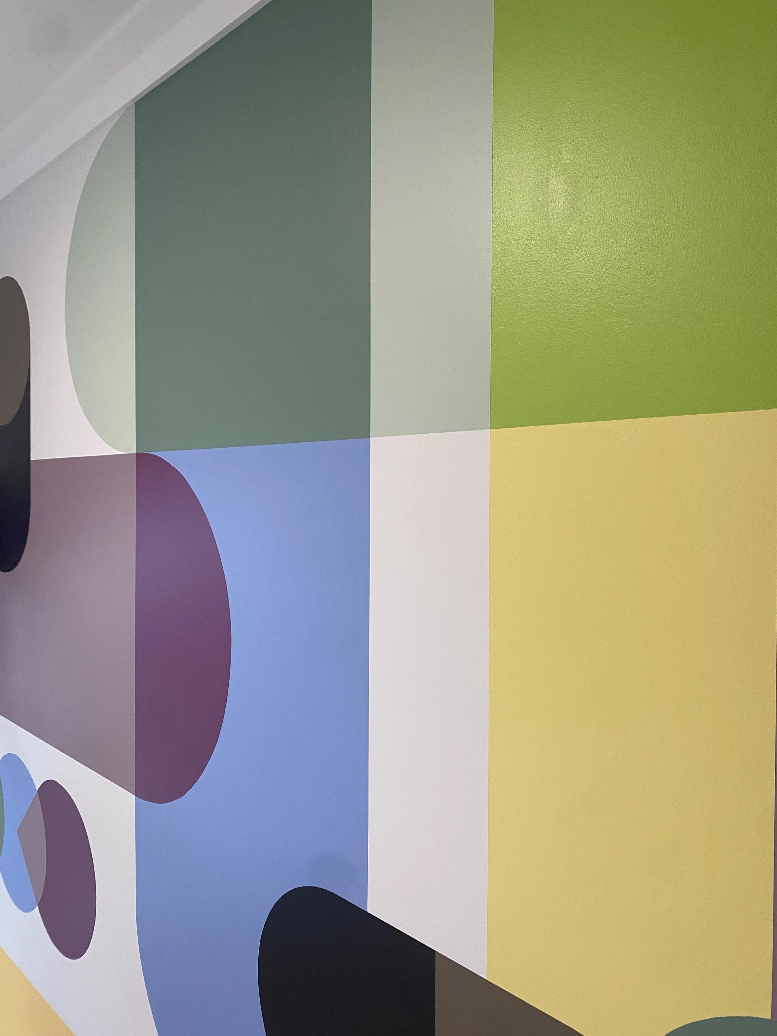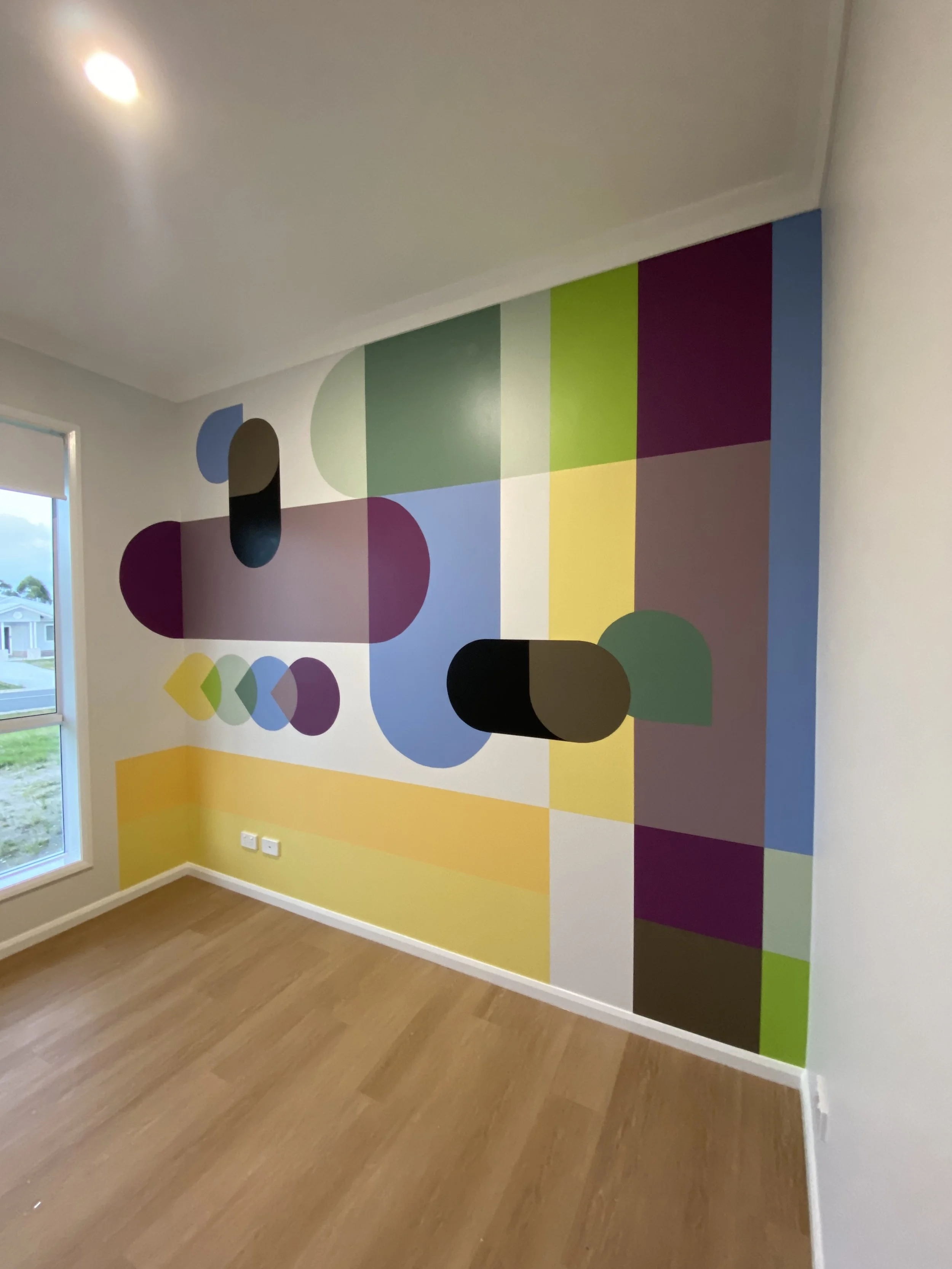 Easy Promo is an established business located in Delaney’s Creek that specialises in promotional products, uniforms and print management. We were lucky enough to have these creative people trust us to deliver a unique & inspiring mural for their home office. The challenges of working from home can include lack of motivation, stimulation and drive. We designed this mural to combat these things while answering to the brief. This Mural was designed to be a unique interpretation of Easy Promo’s logo without actually incorporating it within the design too much. We like to think of it as a deconstructed version. We have used the same logo colours however they are a slightly more subdued version. This allows the guys at Easy Promo to feel inspired with creativity without being overstimulated. Did I mention it doubles as great backdrop during those first time client meetings via zoom! Now that’s great brand marketing!