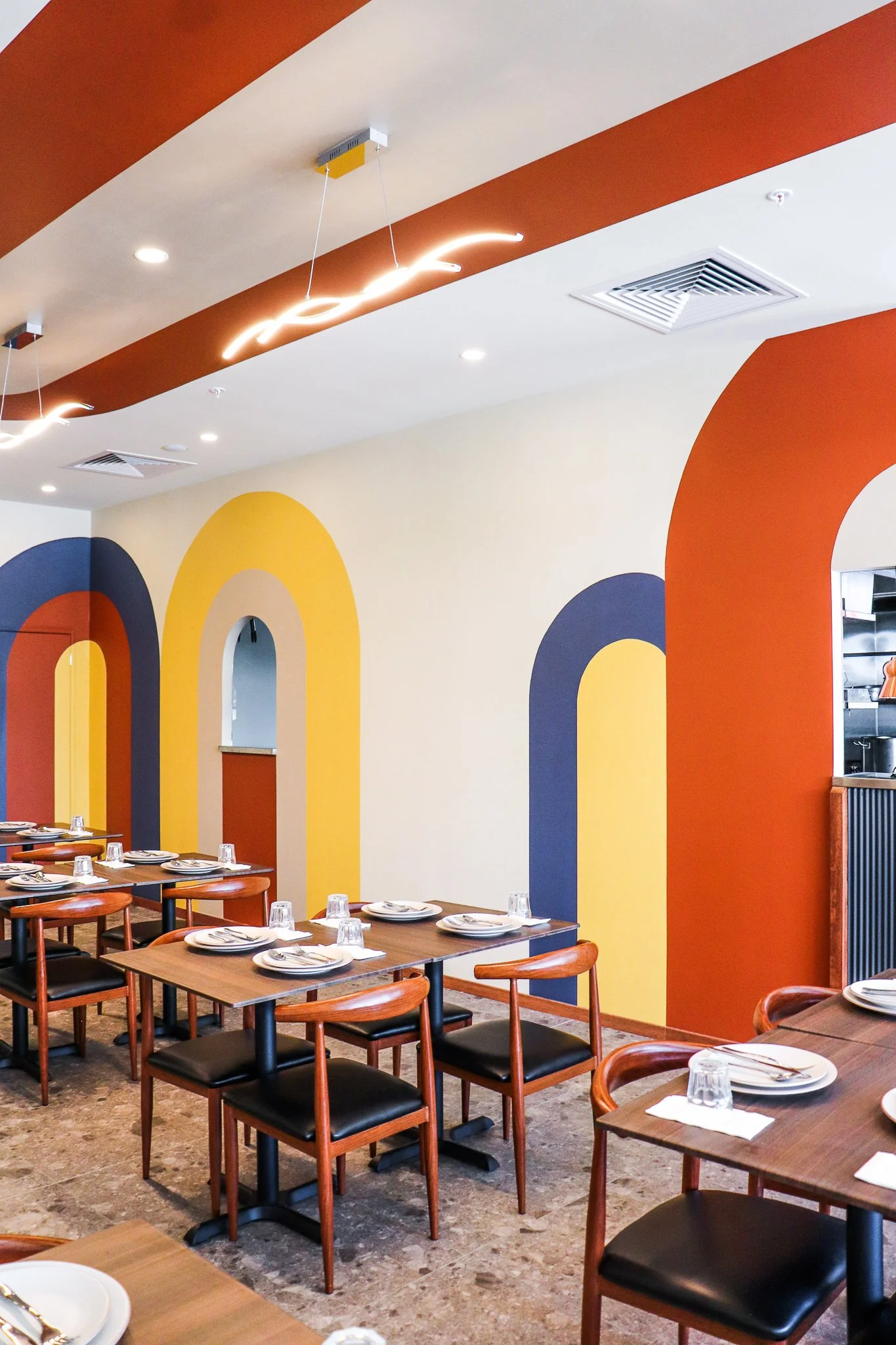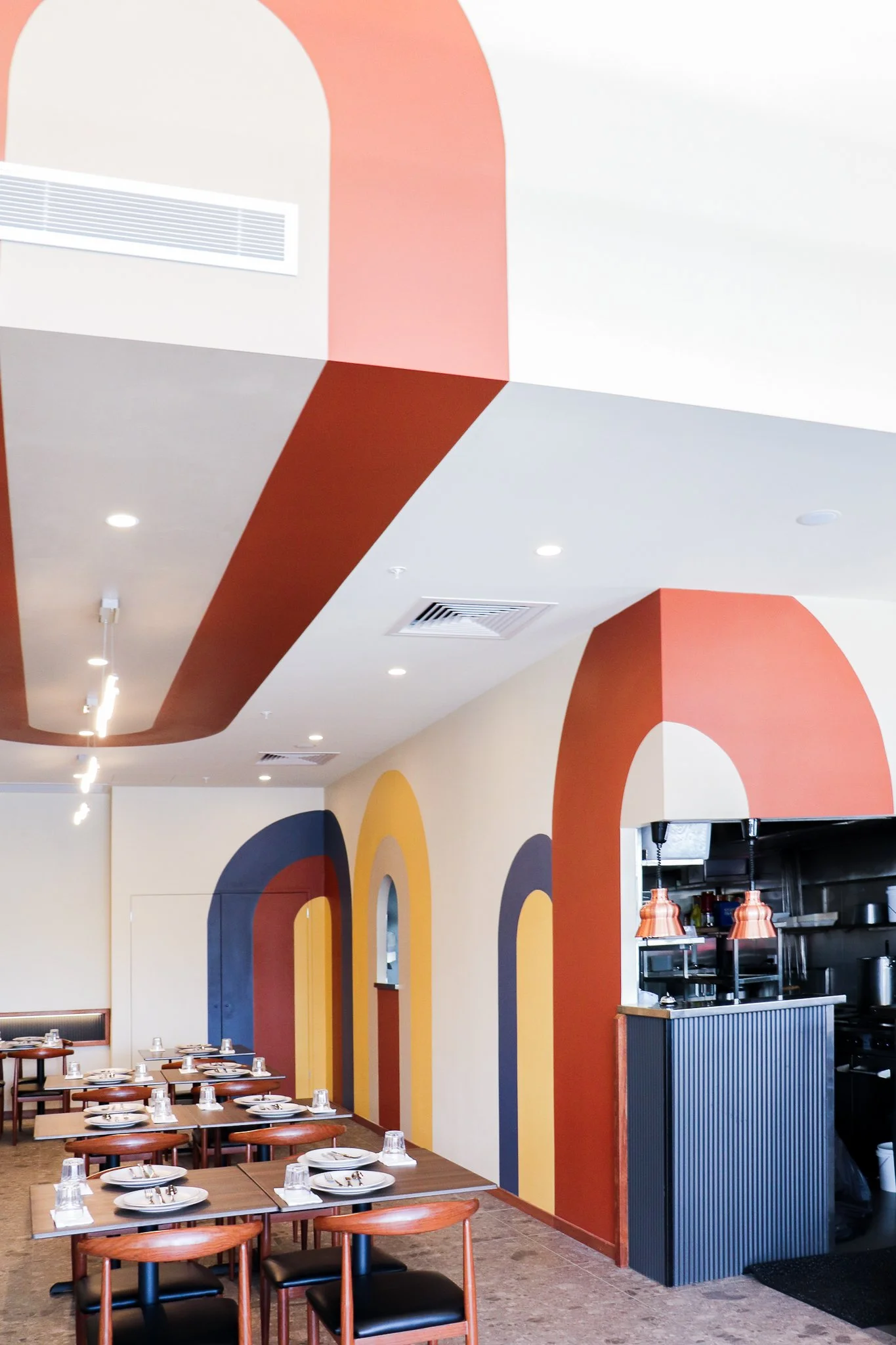 Dhamaka Indian Restaurant is located in the new shopping precinct, Pumicestone Rd, Caboolture. Specialising in authentic Indian cuisine that excites and delights using the freshest local ingredients alongside specialty imported spices. Entering the restaurant you are greeted with the familiar aromatics that Indian cuisine brings. Food that warms the soul and restaurant owners that are known for their professional and welcoming nature. The Mural creates a bright, colourful, exciting and bold statement; mirroring all that Dhamaka Indian food brings to the table (pun intended). This mural sits boldly along one side of the restaurant as well as spilling onto the ceiling and bulkheads. A true example of how a mural can have a huge impact while reflecting your personality/brand.